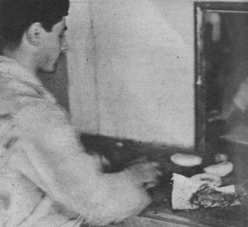 ORE 10.30 - Un altro uomo per ogni "rancio" ritira alla cambusa i panini e la mortadella. I marinai consumano così uno spuntino prima del pranzo.