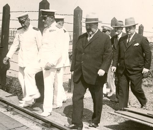 VaroImmagine 6 di 16<< Indietro - Back............................................................................................... Avanti - Forward >> Esci dalla Photo Gallery - Exit Dettaglio dei responsabili del cantiere che accompagnano ufficiali della Marina in visita ai lavori.