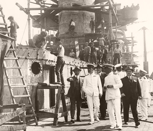 VaroImmagine 8 di 16<< Indietro - Back............................................................................................... Avanti - Forward >> Esci dalla Photo Gallery - Exit Inquadratura della tuga poppiera, durante una visita, mentre il lavoro prosegue. I fumaioli sono circondati da impalcature.
