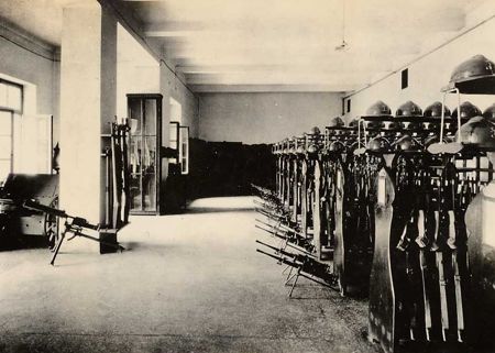 CarlottoImmagine 13 di 22<< Indietro - Back............................................................................................... Avanti - Forward >> Esci dalla Photo Gallery - Exit Caserma Carlotto. Armeria. Elmetti della Grande Guerra. Mitragliatrici e fucili.