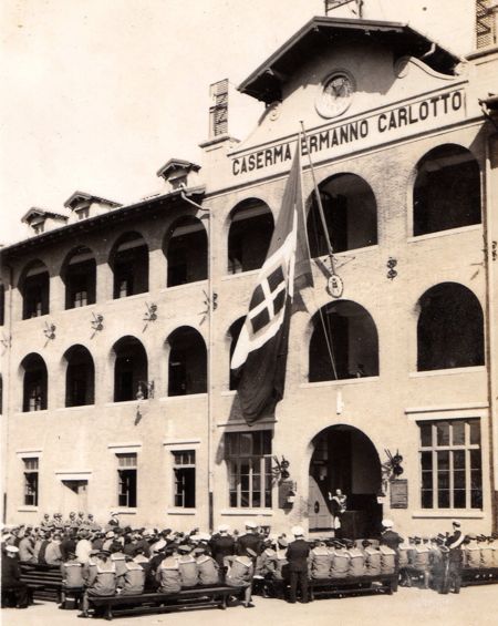 CarlottoImmagine 21 di 22<< Indietro - Back............................................................................................... Avanti - Forward >> Esci dalla Photo Gallery - Exit Si ascolta un discorso seduti nel cortile della Caserma Carlotto.