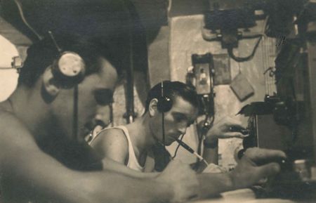 Trento RTImmagine 8 di 12<< Indietro - Back............................................................................................... Avanti - Forward >> Esci dalla Photo Gallery - Exit Radiotelegrafisti al lavoro nella Stazione Radio Protetta del Trento. Vittorio Dini in primo piano.
