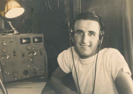 Trento RTImmagine 9 di 12<< Indietro - Back............................................................................................... Avanti - Forward >> Esci dalla Photo Gallery - Exit Vittorio Dini, Radiotelegrafista del Trento, al suo posto di lavoro.