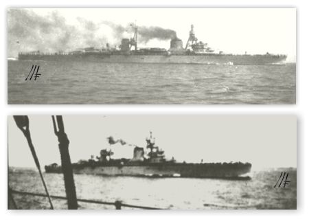 Navi in CinaImmagine 16 di 30<< Indietro - Back............................................................................................... Avanti - Forward >> Esci dalla Photo Gallery - Exit Incrociatore TRENTO in due immagini colte in navigazione dal vicino Espero, durante la missione in Cina (Collezione Caligaris).