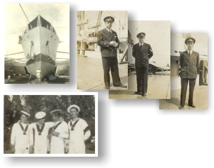 Cannoniera LEPANTO (Collezione Guerrino Kotlar). Il Capo Contabile, il Capo Segnalatore, il Nostromo. Nella foto di marinai, il terzo da sinistra è Kotlar.