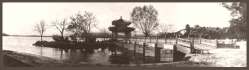 Padiglione della primavera che arriva (Zhichunting) sul lato est del lago Kunming. Sulla destra si scorge in lontananza la Collina della Longevità. Formato immagine 1x4.
