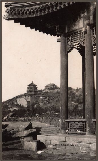 MonumentiImmagine 4 di 21<< Indietro - Back............................................................................................... Avanti - Forward >> Esci dalla Photo Gallery - Exit Dal lato est del lago, sotto il tetto di un padiglione, si vede la Collina della longevità.