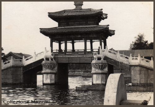 MonumentiImmagine 11 di 21<< Indietro - Back............................................................................................... Avanti - Forward >> Esci dalla Photo Gallery - Exit Il Ponticello del cuore che fluttua (Xingqiao) che collega la Collina all'isola, lato ovest.