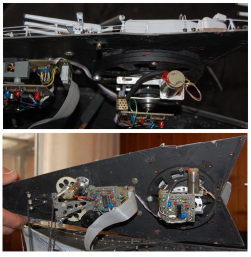 I movimenti sotto il ponte per muovere una torre di grosso calibro. Sotto il ponte di prora si vede il movimento della torre 1 e (a sinistra) la motorizzazione per salpare le ancore.