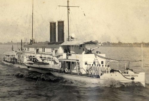 L'altra cannoniera (più piccola) dedicata alla navigazione fluviale: la celebre Carlotto. Immagine molto diffusa, ma qui tra le più nitide esistenti oggi.