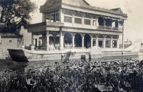 La Nave di Marmo nel Palazzo d'Estate. Luogo di escursione classico per i marinai di stanza in Cina, non lontano da Pechino. Si vedono due marinai sul monumento.