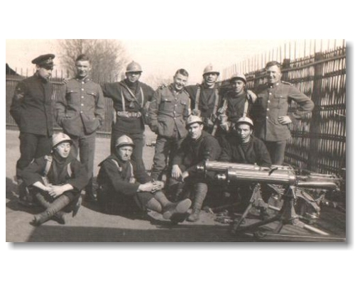 Cina - BignottiImmagine 7 di 20<< Indietro - Back............................................................................................... Avanti - Forward >> Esci dalla Photo Gallery - Exit Foto in posa dei marinai in caserma, accanto alle mitragliatrici, assieme ad altri militari.